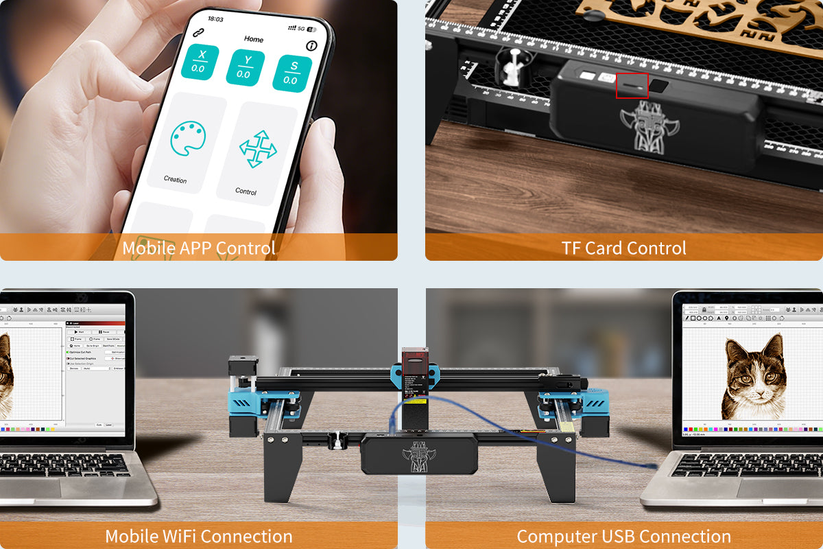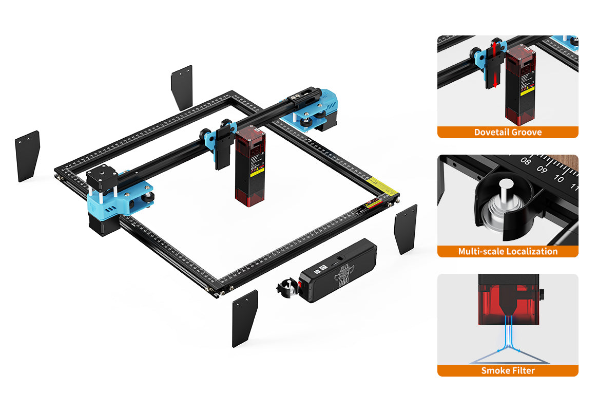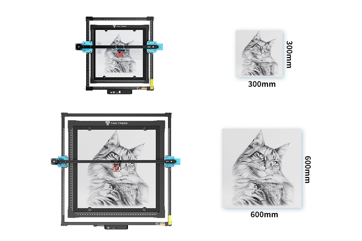 The expansion kit can extend the X/Y axis, making it the most cost-effective large-area laser engraving machine with a maximum expansion area of 600mm*600mm