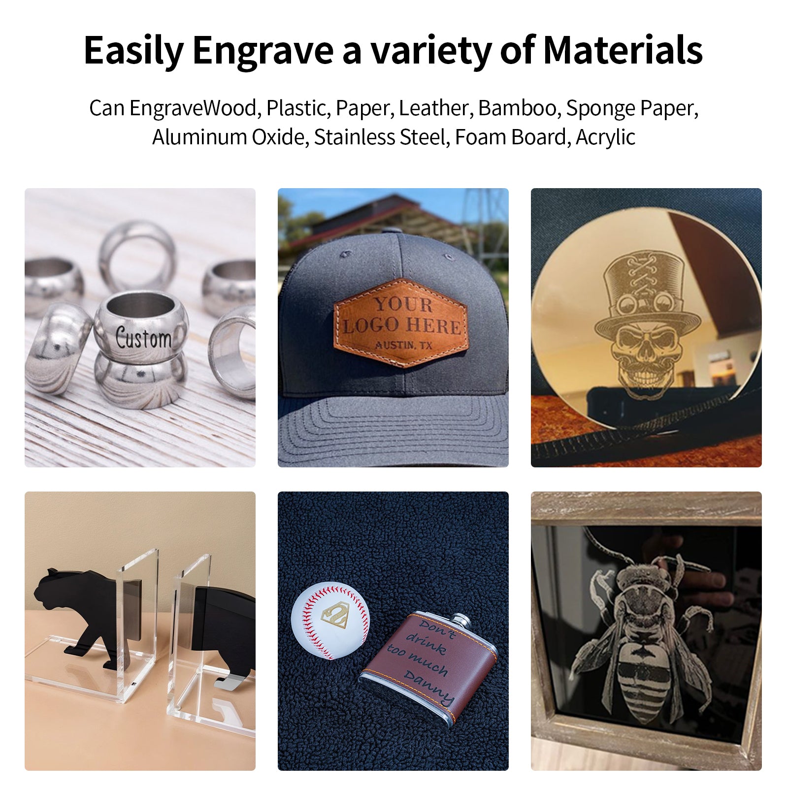 Wood, Plastic, Paper, Leather,Stainless Steel