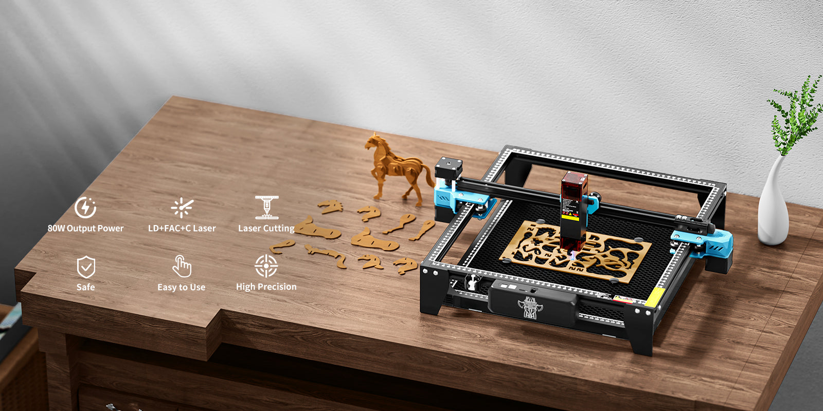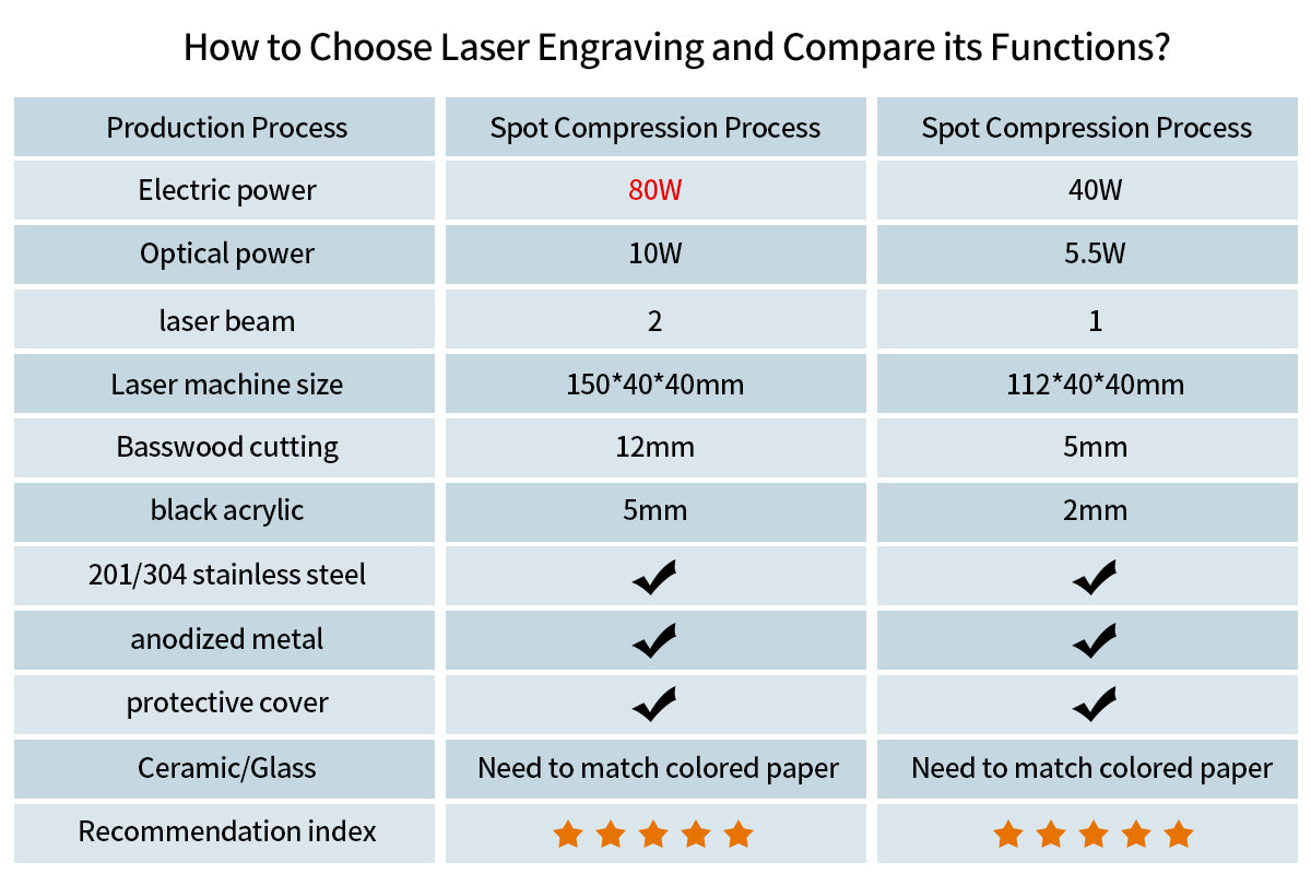 The laser source utilizes LD+C-Lens technology to generate abeam spot as small as 0.08mm, resulting in more detailed engravings.