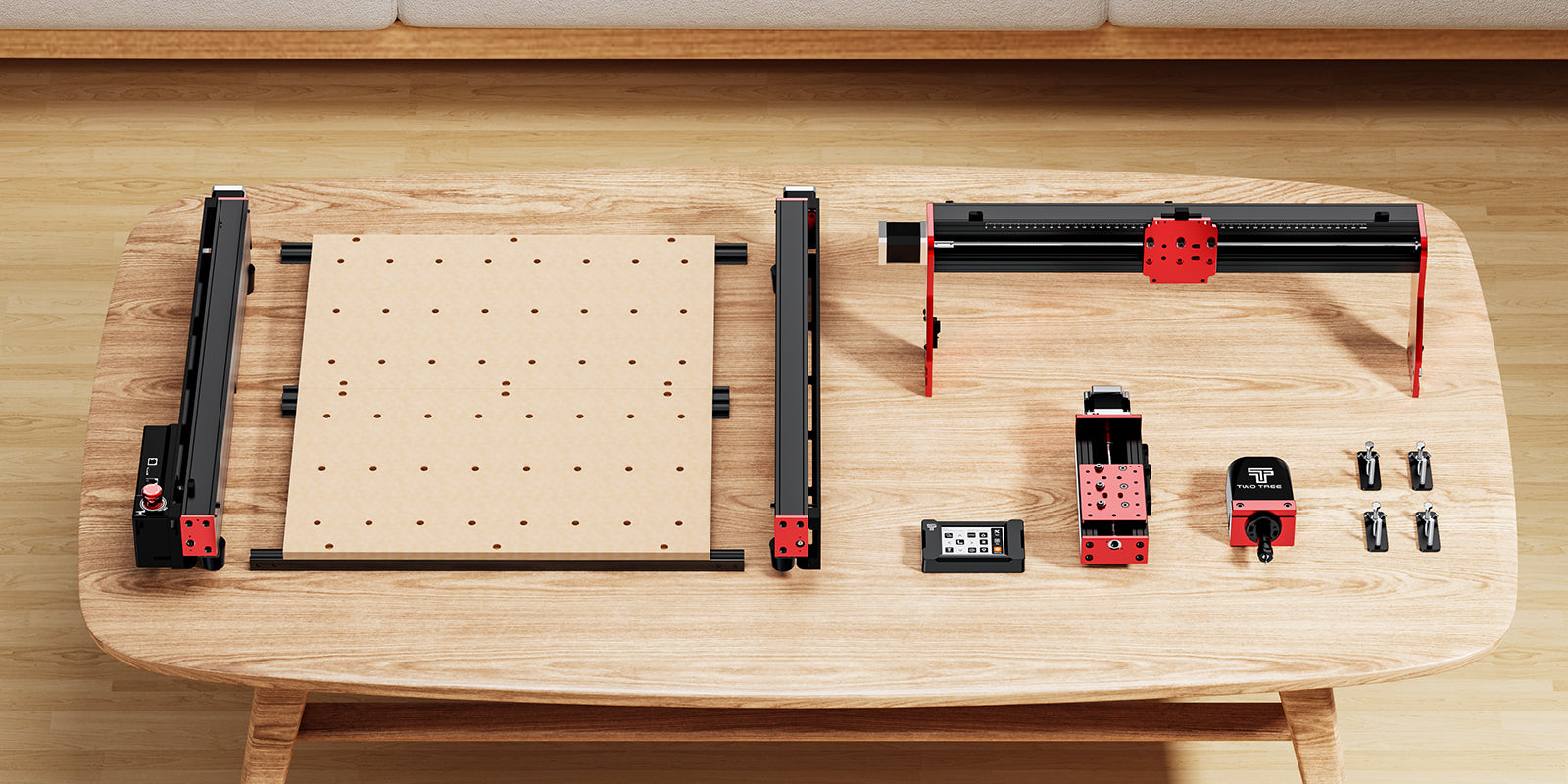 Twotrees TTC450 PRO CNC Router Machine + TC20 Laser Module + 500W Motor + 4th Axis Module + Vacuum Cleaner +End Mills