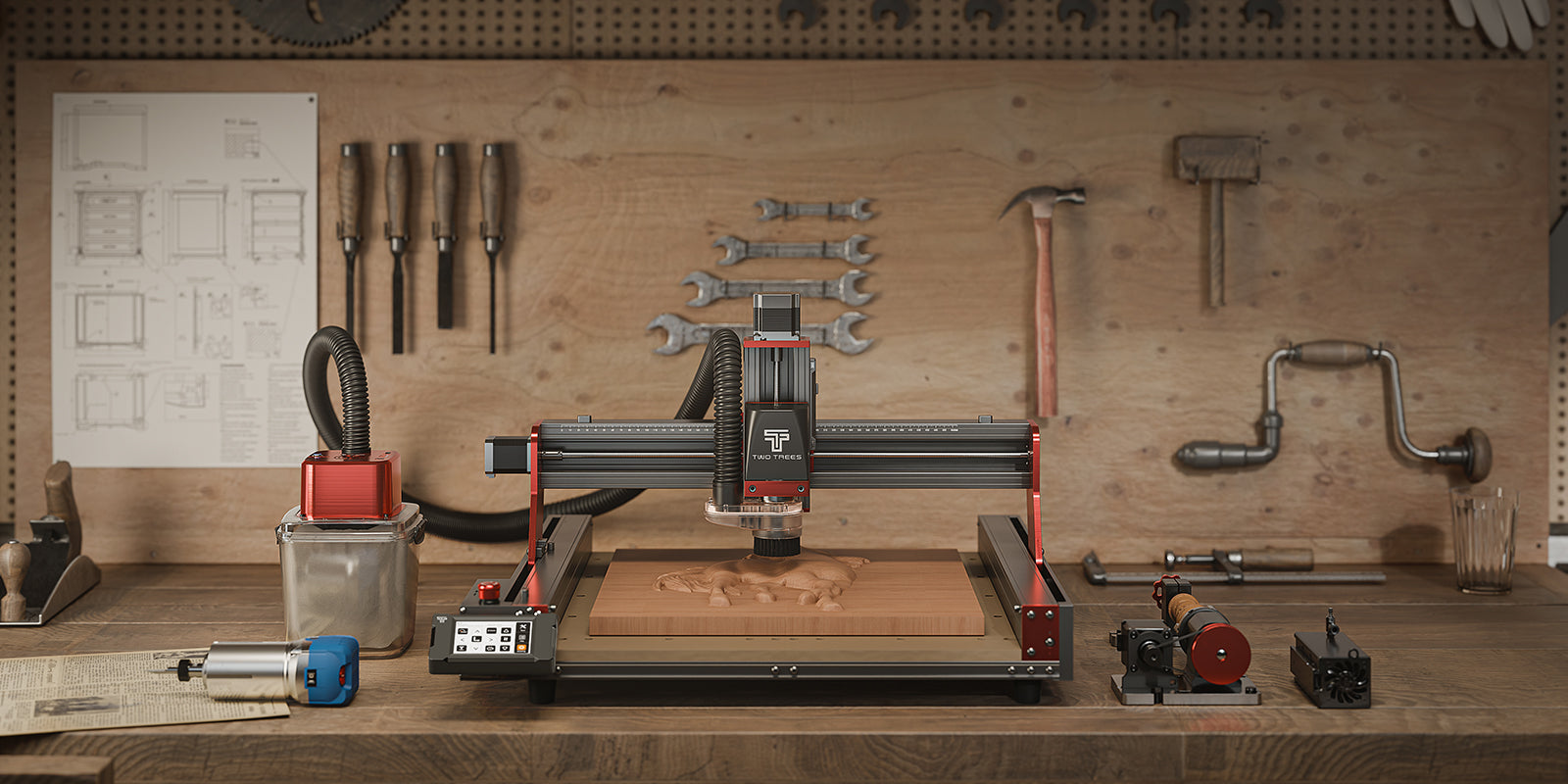 Twotrees TTC450 PRO CNC Router Machine + Vacuum Cleaner M1 + End Mills