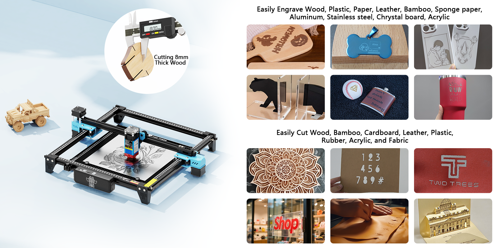 The laser source utilizes LD+C-Lens technology to generate abeam spot as small as 0.08mm, resulting in more detailed engravings.