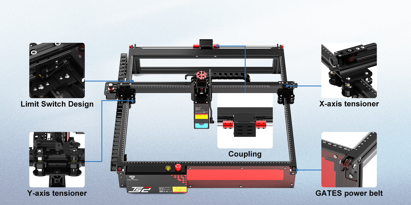 The expansion kit can extend the Y axis, making it themost cost-effective large-area laser engraving machine with a maximum expansion area of 410X900mm.
