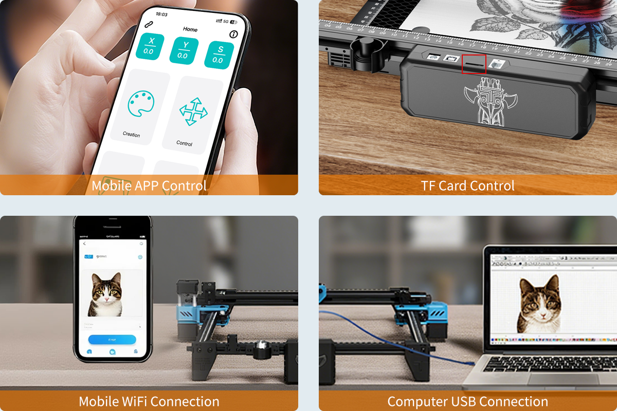 The expansion kit can extend the X/Y axis,making it the most cost-effective large-area laser engraving machine with a maximum expansion area of 600mm*600mm