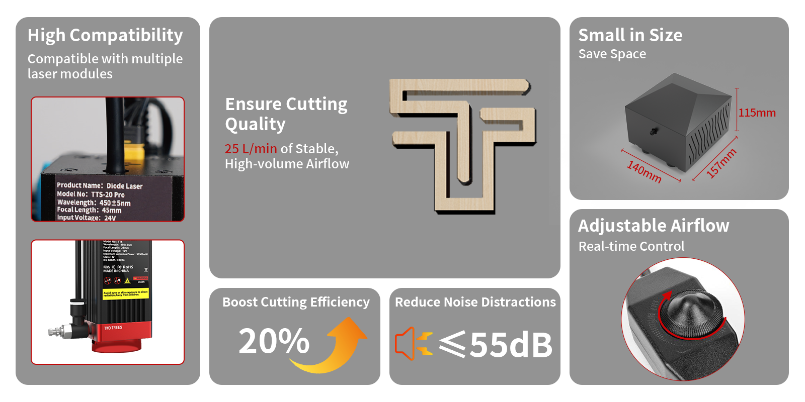 With a compact design (157x140x115mm), it's built for desktop laser machines and takes up less space than traditional large pumps, fitting effortlessly into small workshops and educational stations.