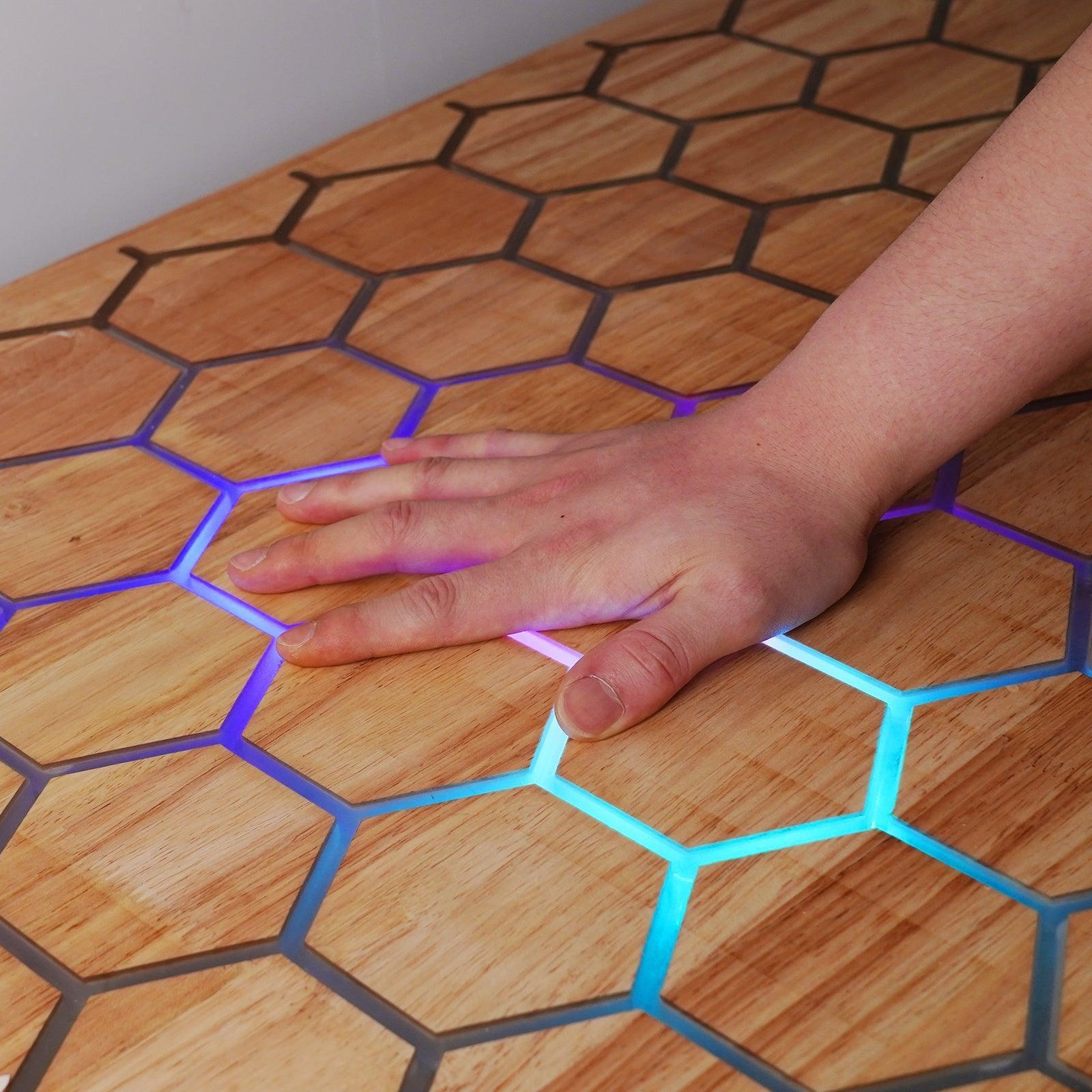 Transform your workspace with this RGB LED kit that can be controlled via touch, sound, and an app for a unique, interactive lighting experience.
